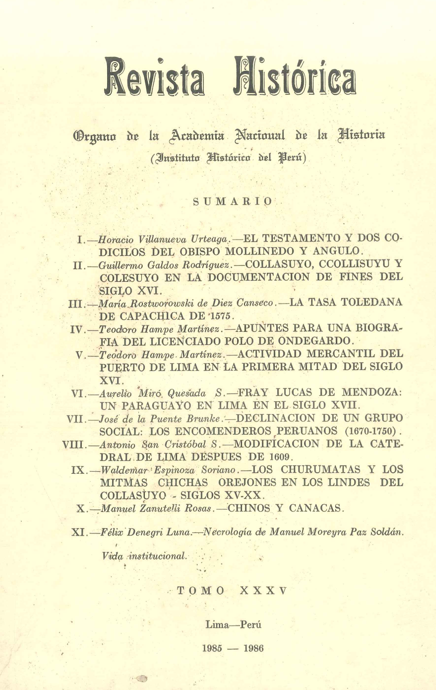 Puente Brunke, J. de la. (2025). Declinación de un grupo social: los encomenderos peruanos (1670-1750). Revista Histórica, (XXXV), 145–186. Recuperado a partir de https://revistahistorica.academiahistoria.org.pe/index.php/revista-historica/article/view/5363 (Original work published 18 de febrero de 1986)