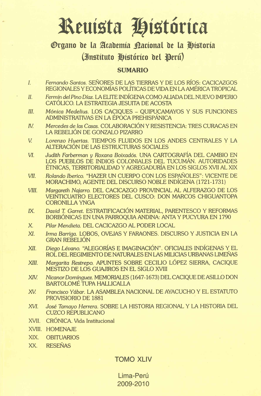 Huertas Vallejos, L. (2025). Tiempos fluidos en los Andes centrales y la alteración de las estructuras sociales. Revista Histórica, (XLIV), 105–111. Recuperado a partir de https://revistahistorica.academiahistoria.org.pe/index.php/revista-historica/article/view/5536 (Original work published 18 de febrero de 2010)